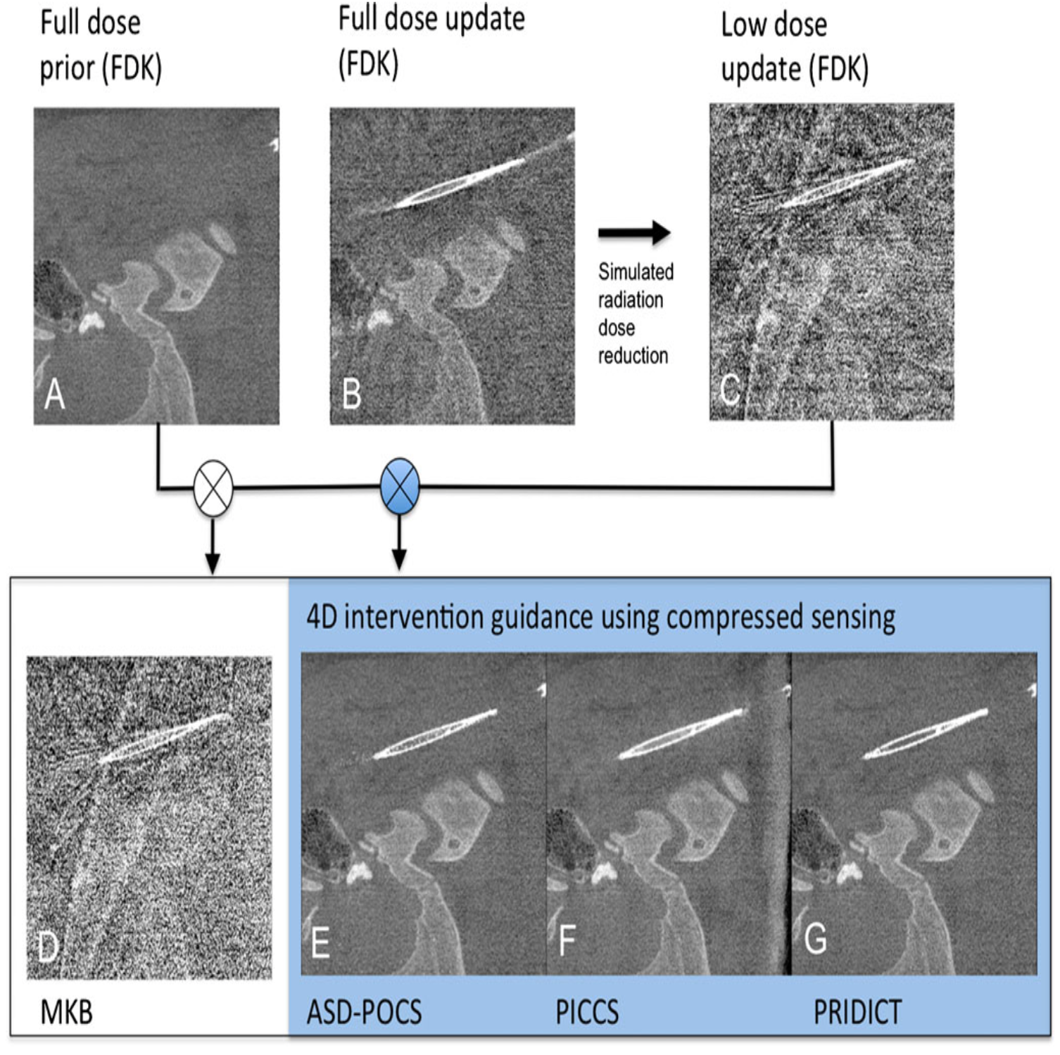 A general description of the concept of 4D intervention guidance was published in European Radiology. Describing the first experimental ex-vivo and in-vivo results compromising an experimental continuously rotating flat-panel Volume-CT setup with simulated sparse sampling.