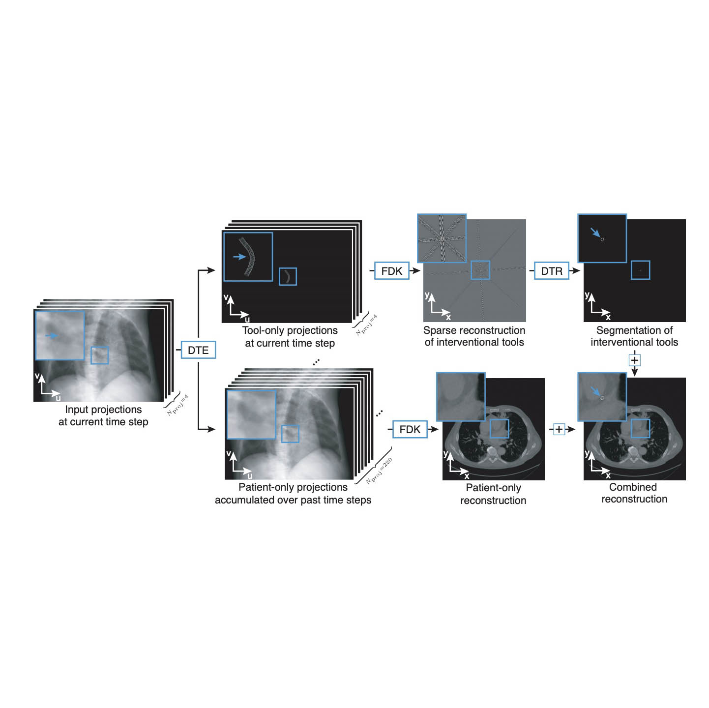 A general description of the concept of 4D intervention guidance was published in European Radiology. Describing the first experimental ex-vivo and in-vivo results compromising an experimental continuously rotating flat-panel Volume-CT setup with simulated sparse sampling.